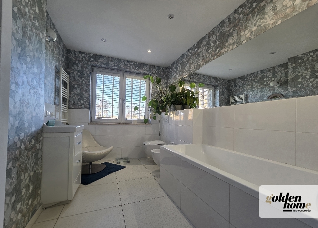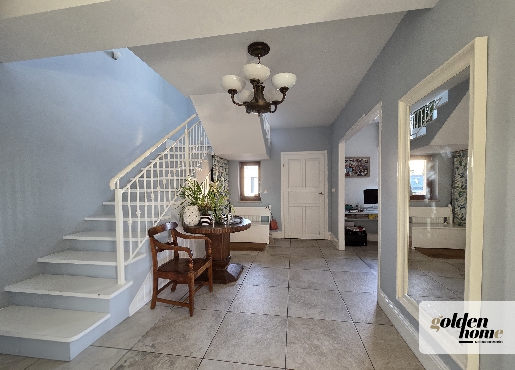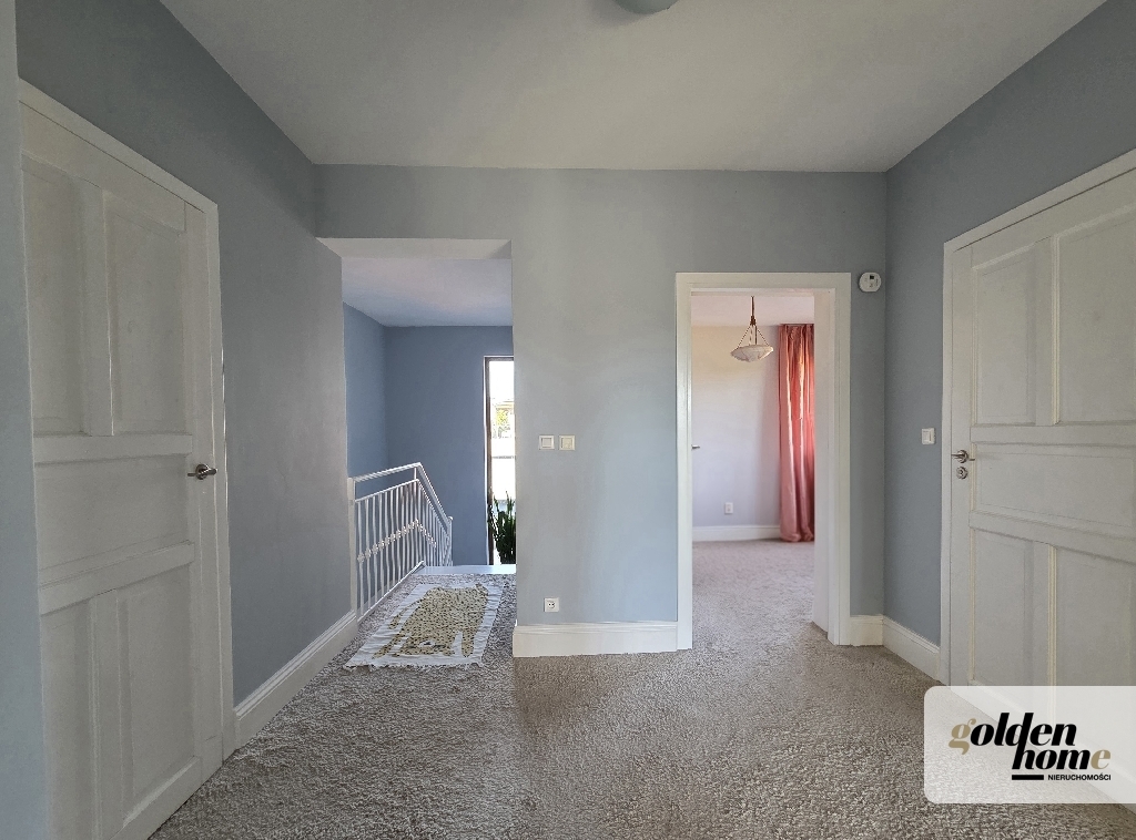 Wnętrze domu utrzymane jest w nowoczesnym stylu z klasycznymi akcentami i eleganckimi wykończeniami, tworząc przytulną i funkcjonalną przestrzeń.