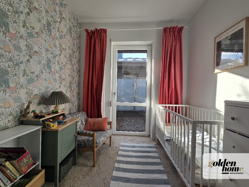 - 3 jasne (duże,dwuskrzydłowe okna), ustawne pokoje + mały pokój dziecięcy/gabinet/miejsce pracy/garderoba z wyjściem na taras.