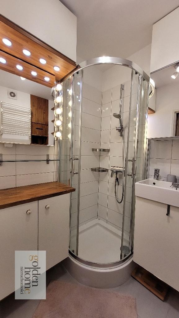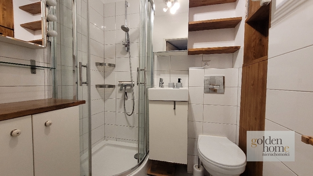 - łazienka z kabiną prysznicową, bardzo gustownie urządzona, z dużą ilością pojemnych szafek.