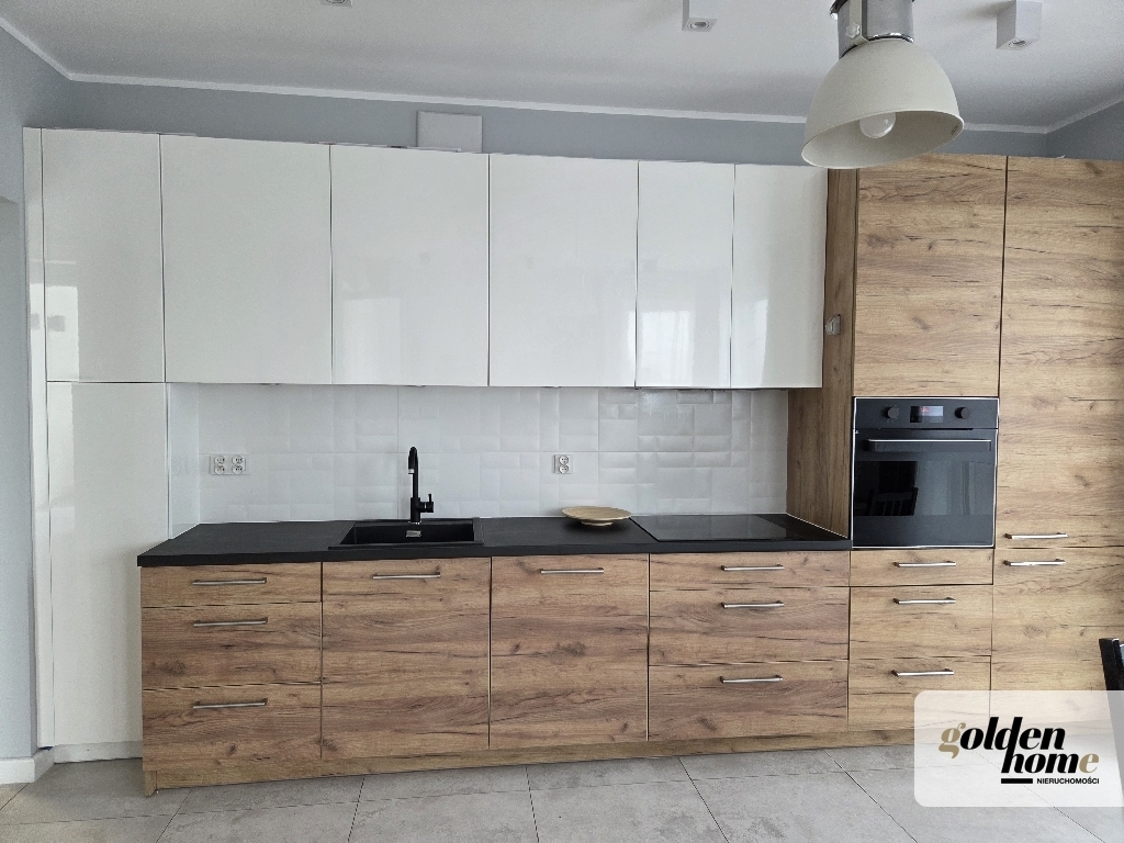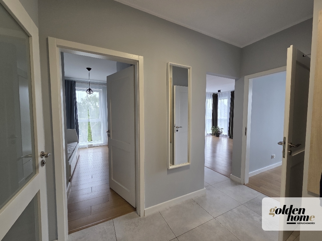 Mieszkanie przygotowane do zamieszkania, zabudowa kuchenna z pełnym sprzętem AGD, łazienka z wanną i pralką, pokoje sypialne wyposażone, dodatkowo zabudowa w szafy garderobiane w przedpokoju i sypialni. Wraz z mieszkaniem, przedmiotem najmu jest miejsce parkingowe w podziemnej hali garażowej oraz komórka lokatorska.