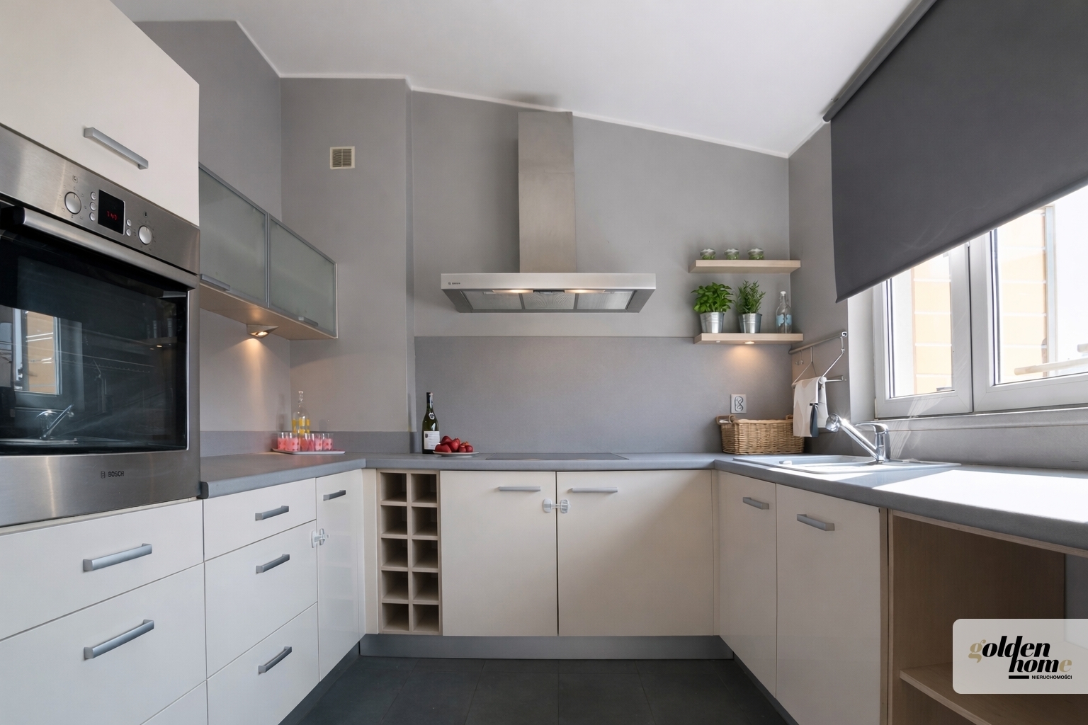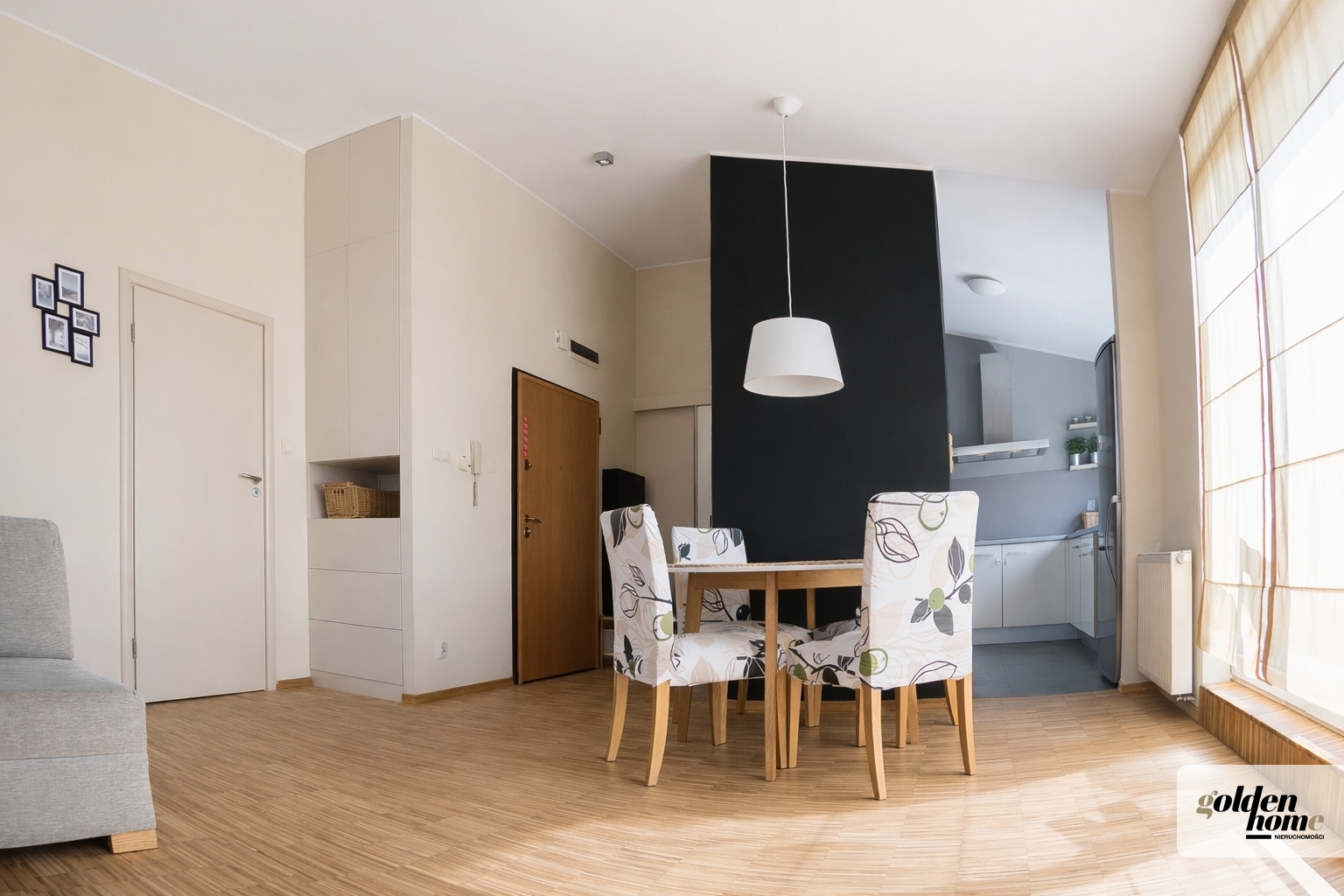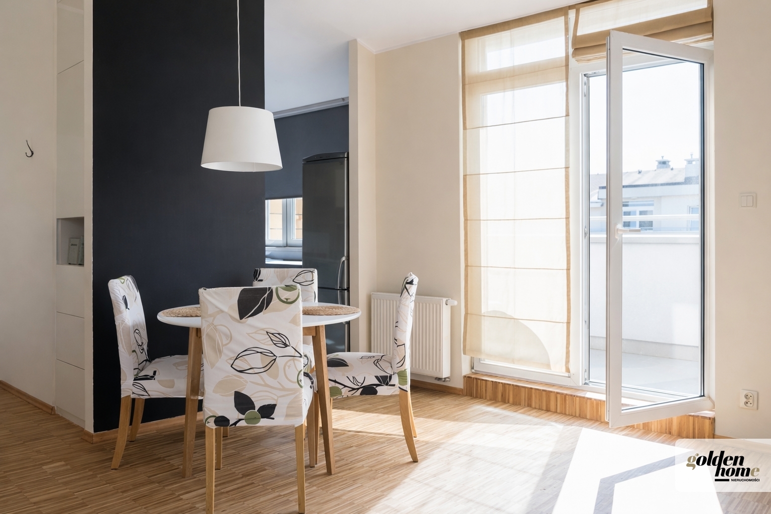 Mieszkanie jest bardzo jasne i przestronne, wyróżniające się wysokością pomieszczeń dochodzącą aż do 3,5 m. Układ wnętrza daje szerokie możliwości aranżacyjne — istnieje m.in. możliwość dobudowania antresoli. Dzięki oknom skierowanym na trzy strony świata wnętrza są świetnie doświetlone przez cały dzień, a poczucie przestrzeni jest wyjątkowo komfortowe.