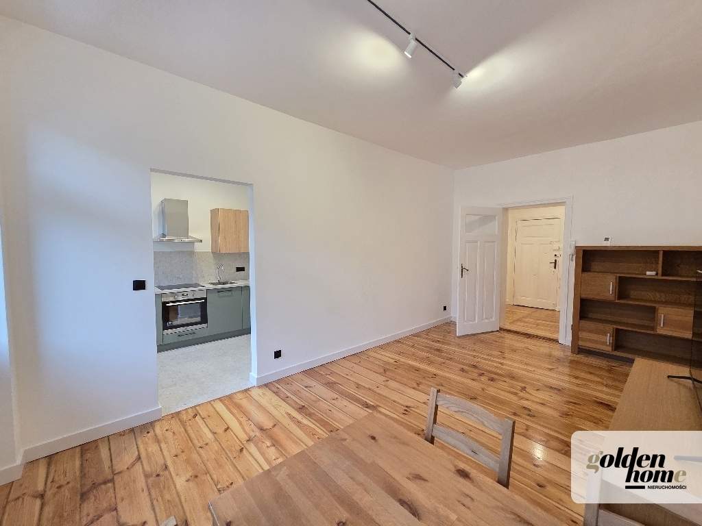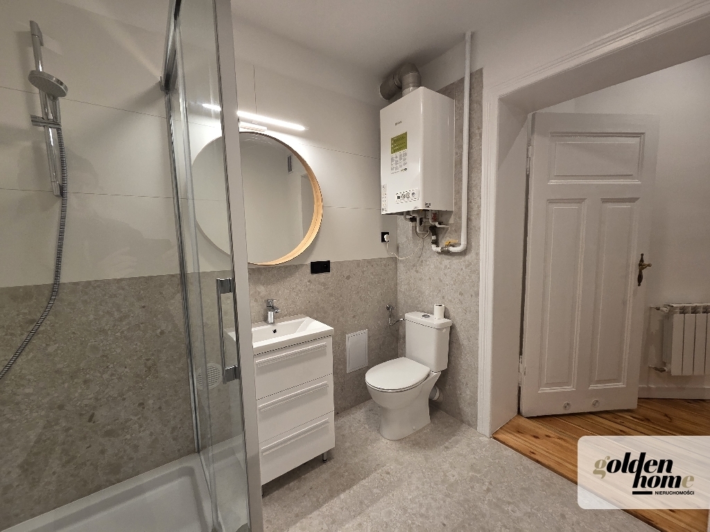 Świeżo wyremontowany lokal o pow. 58,5m2 składa się z dwóch pokoi, kuchni, łazienki oraz korytarza. Idealnie skomponowany nowoczesny wystrój w połączeniu z oryginalnymi elementami wykończenia - odrestaurowanymi, starymi deskami podłogowymi, drzwiami wewnętrznymi, przestronnymi wysokimi pomieszczeniami podkreśla kamieniczny charakter całego wnętrza.