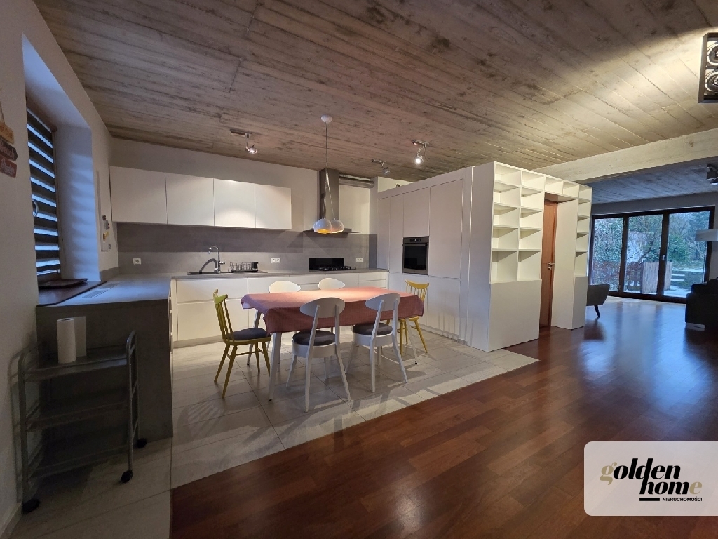 Dom o powierzchni użytkowej ok. 250 m² (ok. 170 m² powierzchni mieszkalnej) został wykończony w wysokim standardzie, z wyraźnym charakterem architektonicznym.